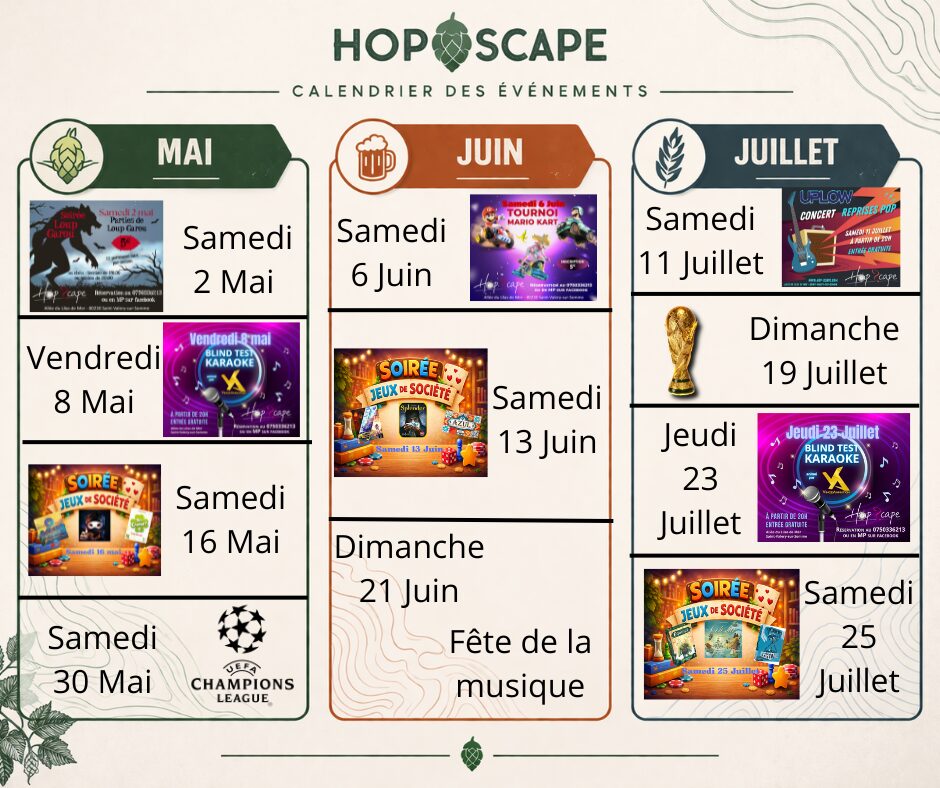 De mai à juillet, Hop Scape vous a préparé un programme riche en animations ! 🎉